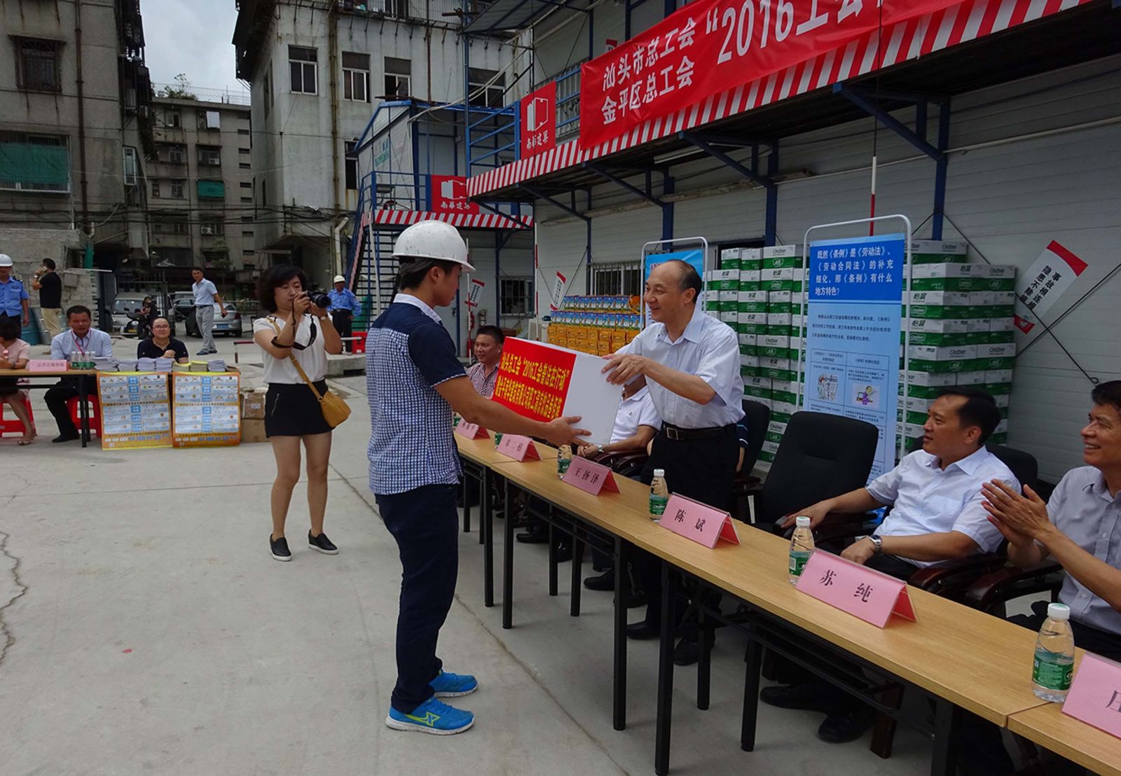 盛夏已到,高溫來襲,這給各行業(yè)作業(yè)人員帶來諸多的影響,尤其是奮戰(zhàn)在建筑施工現(xiàn)場的作業(yè)人員容易疲勞及中暑,為進一步關心現(xiàn)場作業(yè)人員的身心健康,汕頭市總工會、金平區(qū)總工會聯(lián)合我司于6月30號在建設項目施工現(xiàn)場舉行 “2016工會普法在行動”法律咨詢、送清涼活動。