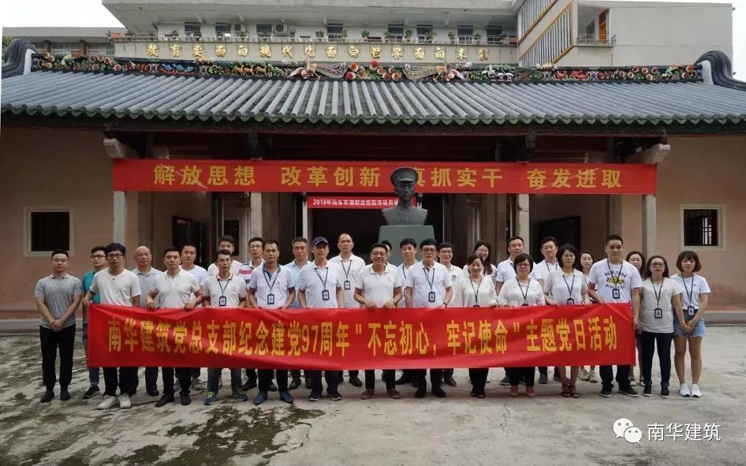為紀(jì)念中國(guó)共產(chǎn)黨成立97周年,發(fā)揮黨組織的戰(zhàn)斗堡壘和廣大黨員的先鋒模范作用,并結(jié)合上級(jí)黨委要求深入學(xué)習(xí)貫徹習(xí)近平總書記重要講話精神和對(duì)廣東工作一系列指示的精神,南華公司黨總支部經(jīng)研究決定,以“不忘初心、牢記使命”為主題,結(jié)合“三會(huì)一課”制度, 6月29日下午,公司領(lǐng)導(dǎo)攜行政支部全體黨員、入黨發(fā)展對(duì)象、申請(qǐng)人員及青年團(tuán)員到汕頭市同文學(xué)堂進(jìn)行參觀學(xué)習(xí),開展重溫入黨誓詞、重溫革命歷史、傳承紅色基因?yàn)閮?nèi)容的主題黨日活動(dòng)。