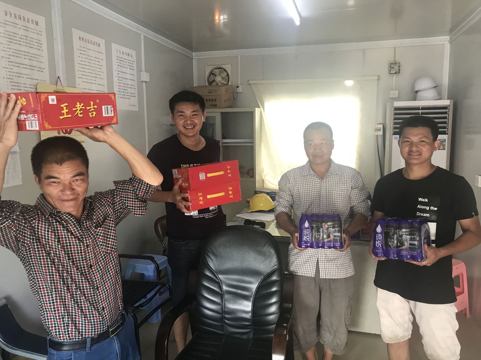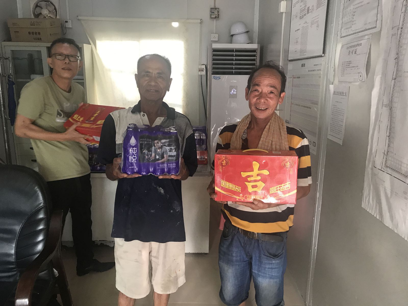為確保工人們的身體健康和建筑工地的生產安全,切實做好夏季防暑降溫工作,近日,公司工會組織開展“建筑工地送清涼”活動,向在建工程項目的施工作業(yè)人員送上涼茶等防暑降溫物品,給在夏日里仍堅守崗位的建設者們送上了慰問與關懷,并對他們付出的辛勤勞動表示感謝。