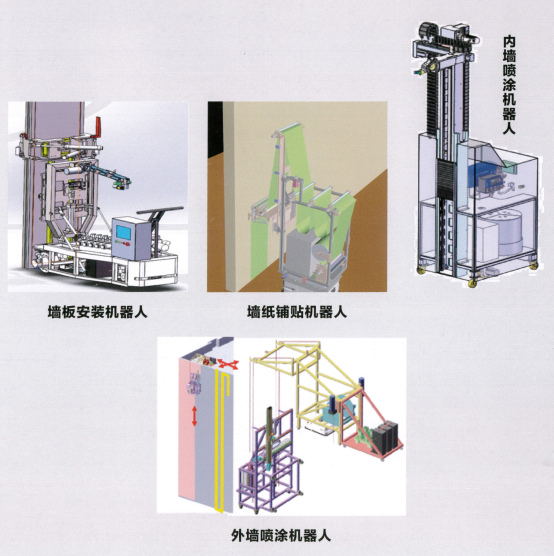 在墻面施工上,噴涂機器人取得成果較高。在通過墻板安裝機器人將墻板放置指點位置安裝后,需克服溫度、濕度、風(fēng)力、噴射強度等多種因素,完成底漆、中涂漆、面漆的均勻全自動噴涂作業(yè)。