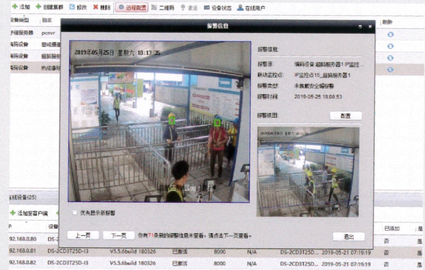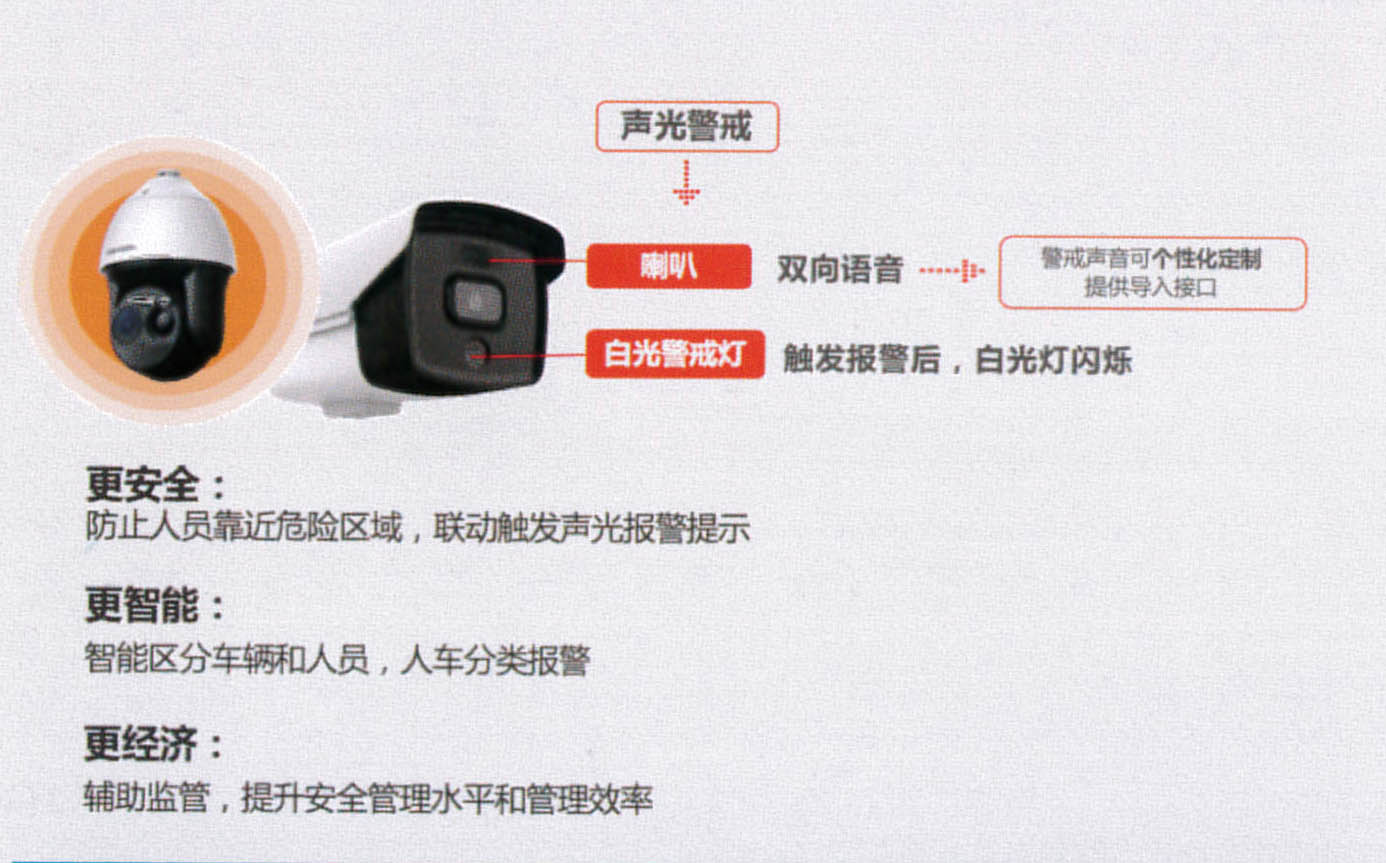 通過在施工現(xiàn)場危險區(qū)域安裝智能AI攝像頭,對不規(guī)范安全行為進行全天監(jiān)控,對臨邊、危險性較大部位安裝區(qū)域報警攝像頭,可以通過網(wǎng)絡(luò)傳輸監(jiān)控影像,還主動發(fā)出語音警報和高光燈提示人員不得進入危險區(qū)域。