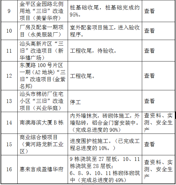以下16個(gè)項(xiàng)目工程接受本次檢查。