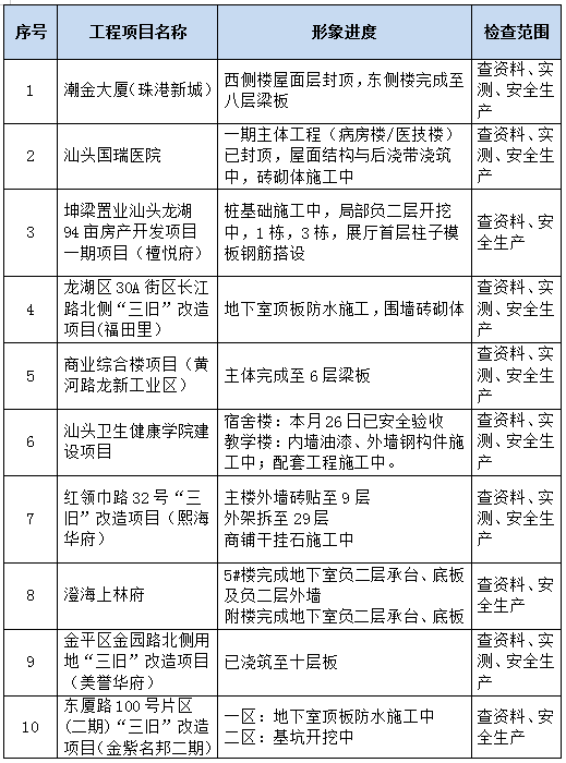 建設(shè)工程質(zhì)量關(guān)系到公共利益和公眾安全,對(duì)人民群眾生活質(zhì)量和生命財(cái)產(chǎn)安全有著直接的影響?,F(xiàn)階段工程質(zhì)量的重要性越來越突出,新規(guī)范、新工藝、新要求對(duì)質(zhì)量的要求越來越高。南華集團(tuán)積極跟進(jìn)并樹立“建設(shè)優(yōu)質(zhì)工程,創(chuàng)造優(yōu)良信譽(yù)”的企業(yè)形象。并嚴(yán)格按照建設(shè)部的有關(guān)工程質(zhì)量治理的文件精神、以及集團(tuán)公司的質(zhì)量方針、安全生產(chǎn)工作方針等宗旨,加強(qiáng)貫徹落實(shí)國家工程質(zhì)量安全法律法規(guī)和規(guī)范性文件的要求。集團(tuán)公司通過對(duì)項(xiàng)目制定相應(yīng)的檢查方案,并及時(shí)轉(zhuǎn)發(fā)文件和宣傳文件精神,加大企業(yè)對(duì)地基基礎(chǔ)和主體結(jié)構(gòu)實(shí)體、裝飾裝修等過程中管理的力度。并通過公司級(jí)質(zhì)量安全巡查監(jiān)管、項(xiàng)目部自我提升建設(shè)工程管理規(guī)范化、項(xiàng)目部管理人員管理的系統(tǒng)化,使公司質(zhì)量管理水平有著整體提升。根據(jù)現(xiàn)階段工程項(xiàng)目形象進(jìn)度,本次季度檢查對(duì)各階段項(xiàng)目工程檢查如下: