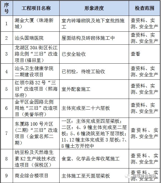根據(jù)現(xiàn)階段工程項(xiàng)目形象進(jìn)度,集團(tuán)公司將開(kāi)展在建工程項(xiàng)目實(shí)體質(zhì)量抽查抽測(cè),進(jìn)一步強(qiáng)化工程實(shí)體質(zhì)量監(jiān)管。