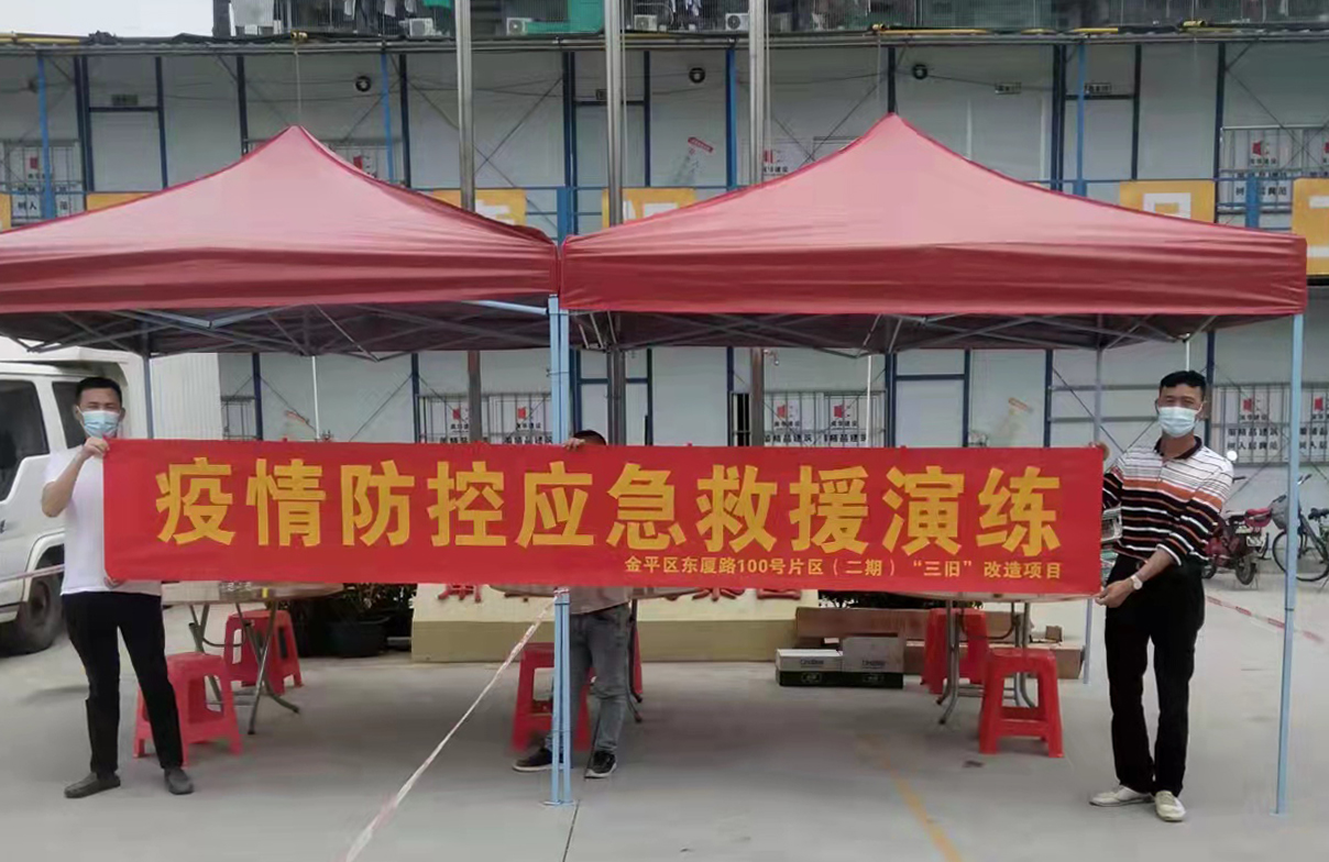 為貫徹落實(shí)省、市各級部署要求,切實(shí)做好施工現(xiàn)場疫情常態(tài)化防控工作,確保各項疫情常態(tài)化防控措施執(zhí)行到位,集團(tuán)公司結(jié)合近期建筑工地疫情防控工作需要,建立健全疫情常態(tài)化防控應(yīng)急機(jī)制,完善應(yīng)急預(yù)案,明確應(yīng)急處置流程,聯(lián)合“東廈路100號片區(qū)(二期)三舊改造項目(金紫名邦二期)”、“金平區(qū)金園路北側(cè)用地三舊改造項目”、“潮金大廈項目”、“盈悅?cè)A府項目”、“坤梁置業(yè)汕頭龍湖94畝房產(chǎn)開發(fā)項目一期、二期(檀悅府)”開展防疫應(yīng)急演練,確保責(zé)任落實(shí)到人。