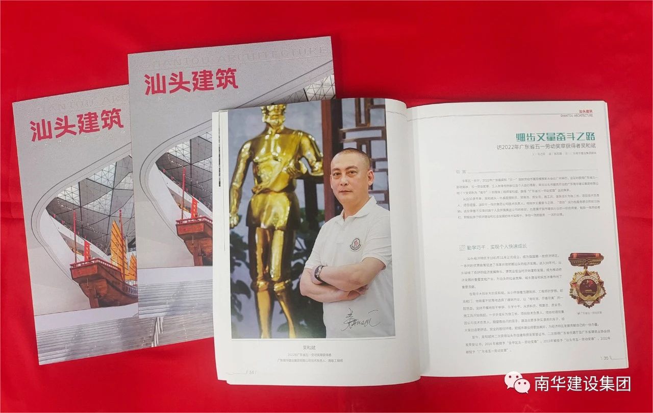 由汕頭市建筑業(yè)協(xié)會主辦的《汕頭建筑》第31期對集團(tuán)公司2022年廣東省五一勞動獎?wù)芦@得者吳和斌出版了專訪。這份榮譽(yù)不僅是對其個人及所屬集團(tuán)公司的肯定,也是屬于我市建筑行業(yè)的一份的榮譽(yù),勉勵一線勞動者們,積極投身于經(jīng)濟(jì)建設(shè)和社會發(fā)展的偉大實踐中,爭創(chuàng)一流的服務(wù)、一流的業(yè)績。