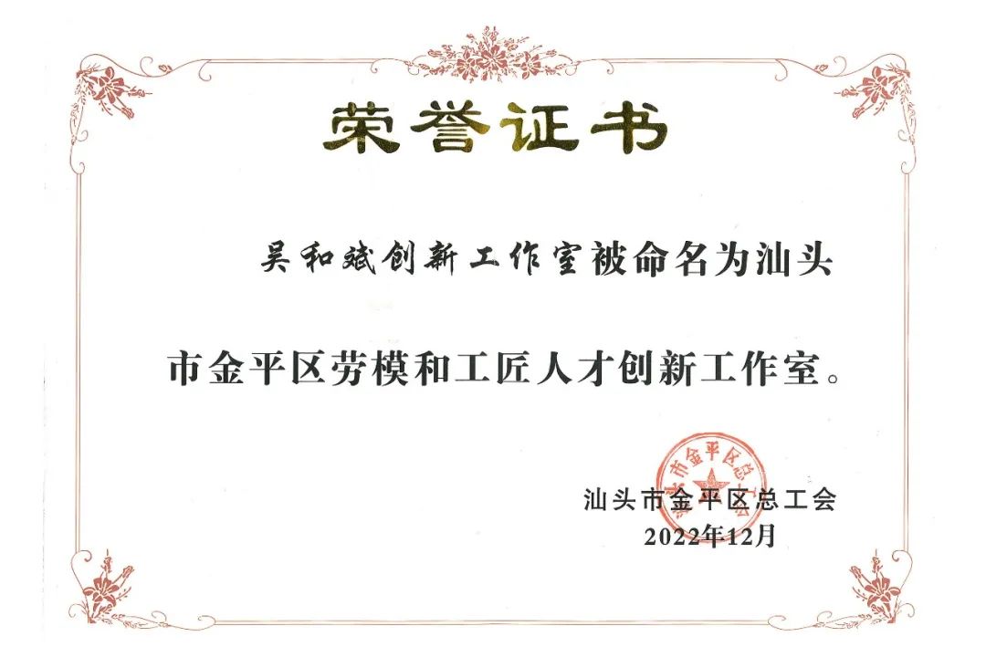 區(qū)總工會授牌“汕頭市金平區(qū)勞模和工匠人才創(chuàng)新工作室”
