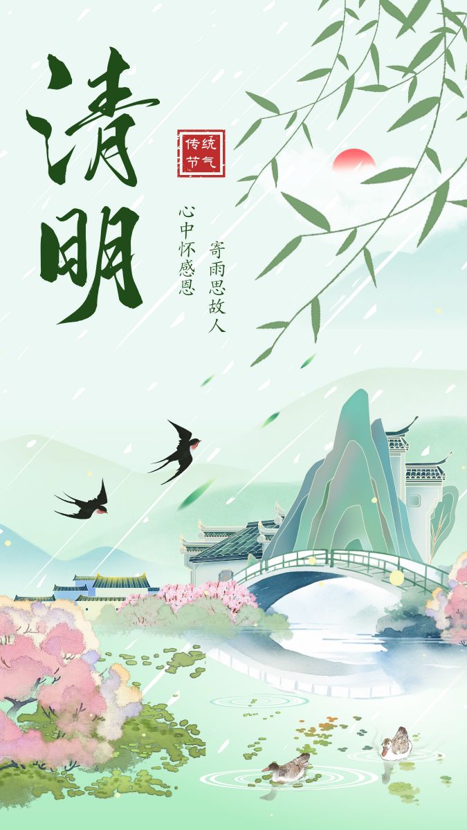青山不語春色新,遙寄相思至清明