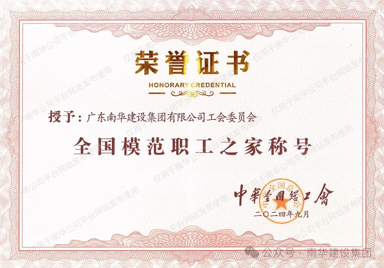 近期,中華全國總工會(huì)表彰了一批全國模范職工之家、模范職工小家和全國優(yōu)秀工會(huì)工作者,廣東南華建設(shè)集團(tuán)有限公司工會(huì)委員會(huì)榮獲“全國模范職工之家”稱號(hào)。
