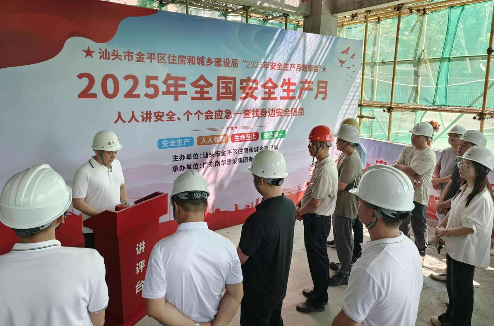 6月26日由汕頭市金平區(qū)住房和城鄉(xiāng)建設(shè)局主辦,廣東南華建設(shè)集團(tuán)有限公司承辦,2025年汕頭市金平區(qū)住建領(lǐng)域“安全生產(chǎn)月現(xiàn)場觀摩交流會(huì)”在北墩蓮池片區(qū)“三舊”改造項(xiàng)目(匯悅翰林府)項(xiàng)目順利舉行。