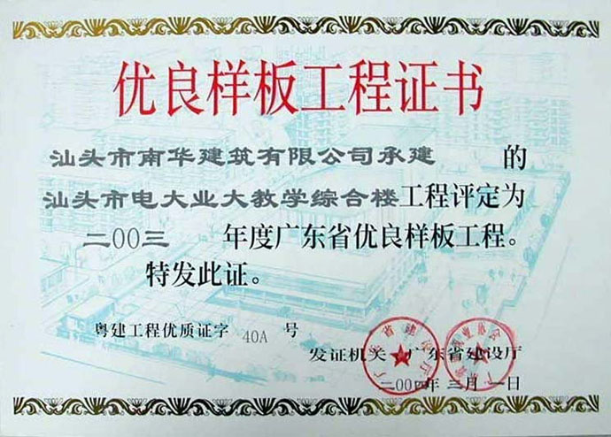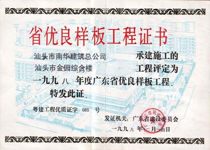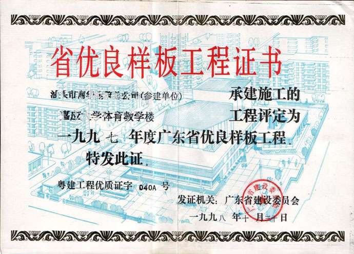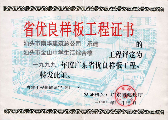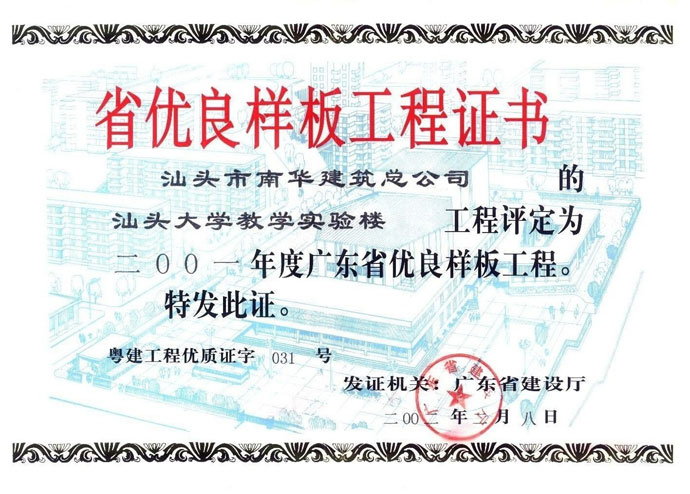 汕頭大學教學實驗樓 省優(yōu)良證書