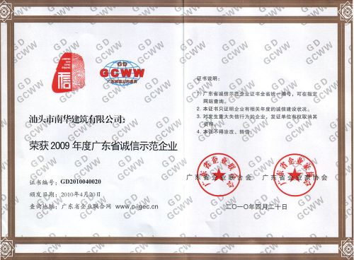 廣東省誠信示范企業(yè)