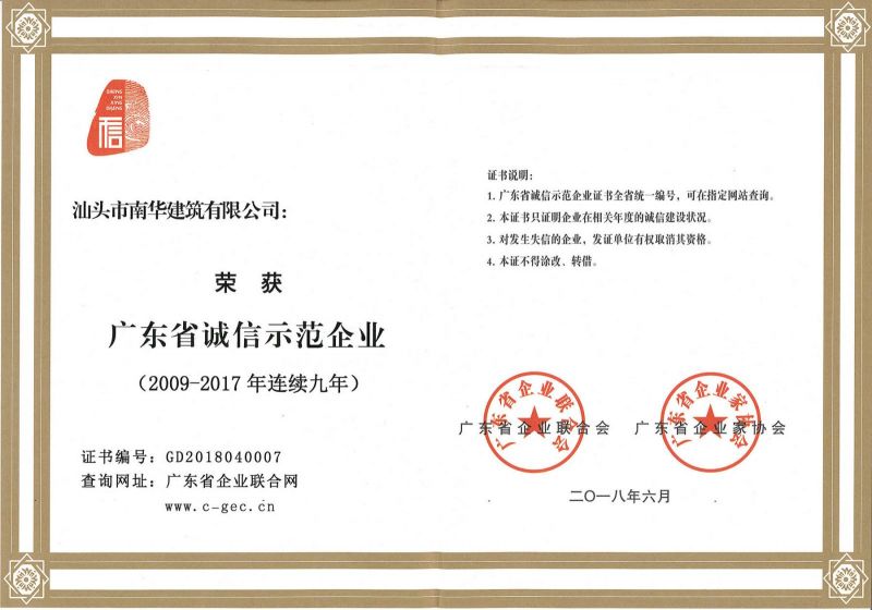 廣東省連續(xù)十年誠信示...